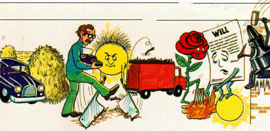 In this picture, you can see a man walking away from the car in the field. He has a pencil behind his ear and is carrying a typewriter and typing paper. He is an AUTHOR who is preparing to write a book. AUTHOR will tell you that ARTHUR is the president who followed Garfield. (AUTHOR - ARTHUR) As you can see, the author is stepping over a meat cleaver stuck in the ground that someone has used to CLEAVE the LAND. CLEAVE-LAND will remind you that CLEVELAND followed Arthur. (CLEAVE-LAND - CLEVELAND) A HAIRY-SUN is holding the cleaver in its right hand. HAIRY-SUN will remind you of HARRISON who was the next president. (HAIRY-SUN - HARRISON) With its left hand the hairy sun has used another meat cleaver to CLEAVE the LAND again to remind you that President CLEVELAND was elected a second time to succeed President Harrison. (CLEAVE-LAND-CLEVELAND) When the hairy sun cleaved the land with its left hand, it struck the end of a piece of firewood and caused it to flip up into a MACK truck loaded with KINDLING (kindling is firewood). MACK-KINDLING will remind you that McKINLEY followed President Cleveland after his second term in office. (MACK-KINDLING - McKINLEY) Examine the picture again and you will notice that the truck loaded with the kindling ran into a ROSE made of FELT. ROSE-FELT will remind you that the president who followed McKinley was ROOSEVELT. (ROSE-FELT - ROOSEVELT) The rose cannot get out of the path of the truck because it is stuck in some TAFFY candy. TAFFY will remind you that TAFT was the next president. (TAFFY - TAFT) A WILL (last will and testament) standing on a small SUN tries to help the rose by pulling the taffy. WILL-SUN will remind you that WILSON was the next president who followed Taft. (WILL-SUN - WILSON) Writing on the will is a very HARD bottle of INK. You know that the ink bottle is hard because it is hitting itself with a hammer and it doesn’t break! HARD-INK reminds you that HARDING was the next president. (HARD-INK - HARDING) You can see that the hard ink is on a COOL-LEDGE. We know the ledge is very cool because there are icicles hanging down. COOL-LEDGE will remind you that COOLIDGE was the president who followed Harding. (COOL-LEDGE - COOLIDGE)