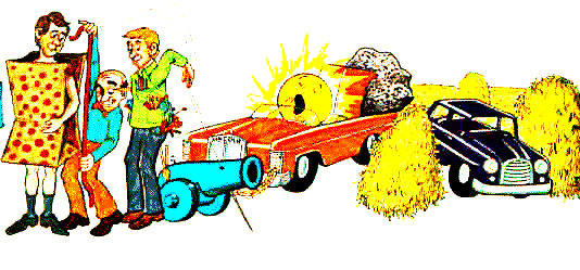 Here's how. In this picture, to the right of the man holding the floor tiles, is a man dressed in a POLKa-dotted POKE. (“Poke” is a slang word for a grocery sack.) This will remind you that the president who followed Tyler was POLK. (POKE, POLKA - POLK) The man is being measured by a TAILOR. He is going to make a new suit. This will tell you that TAYLOR was the next president. (TAILOR - TAYLOR) The tailor’s helper is standing behind him and his pockets are FILLed with much MORE equipment than they can possibly use. As you can see, it is falling all over the ground. FILL-MORE will remind you that FILLMORE was the next president. (FILL-MORE - FILLMORE) The tailor’s helper has just tossed a large needle over his shoulder. The needle has PIERCEd a BLUE-CANNON. This will tell you that PIERCE and BUCHANAN were the next two presidents. (PIERCE - PIERCE; BLUE-CANNON - BUCHANAN) As you look back at the picture you will notice that the BLUE-CANNON is LINKed-ON to a LINCOLN automobile by a chain. LINK-ON and the LINCOLN automobile will remind you that President LINCOLN came after Buchanan. (LINK-ON - LINCOLN) The driver of the Lincoln automobile is a YAWNing SUN and YAWN-SUN will remind you that JOHNSON followed Lincoln. (YAWN-SUN - JOHNSON) As you can see, the yawning sun has a large piece of GRANITE rock in the trunk of the car. GRANITE will remind you that GRANT followed JOHNSON. (GRANITE - GRANT) Just behind the car are some stacks of HAY. The stacks of HAY will remind you that the next president is HAYES. (HAY - HAYES) There is another CAR in the middle of the hay FIELD. CAR-FIELD will remind you that GARFIELD succeeded HAYES. (CAR-FIELD - GARFIELD)
